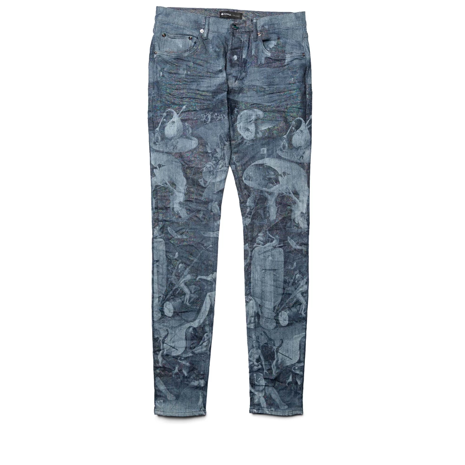 Purple Brand Low Rise Skinny Jean – Washed Indigo Prism Laser Print