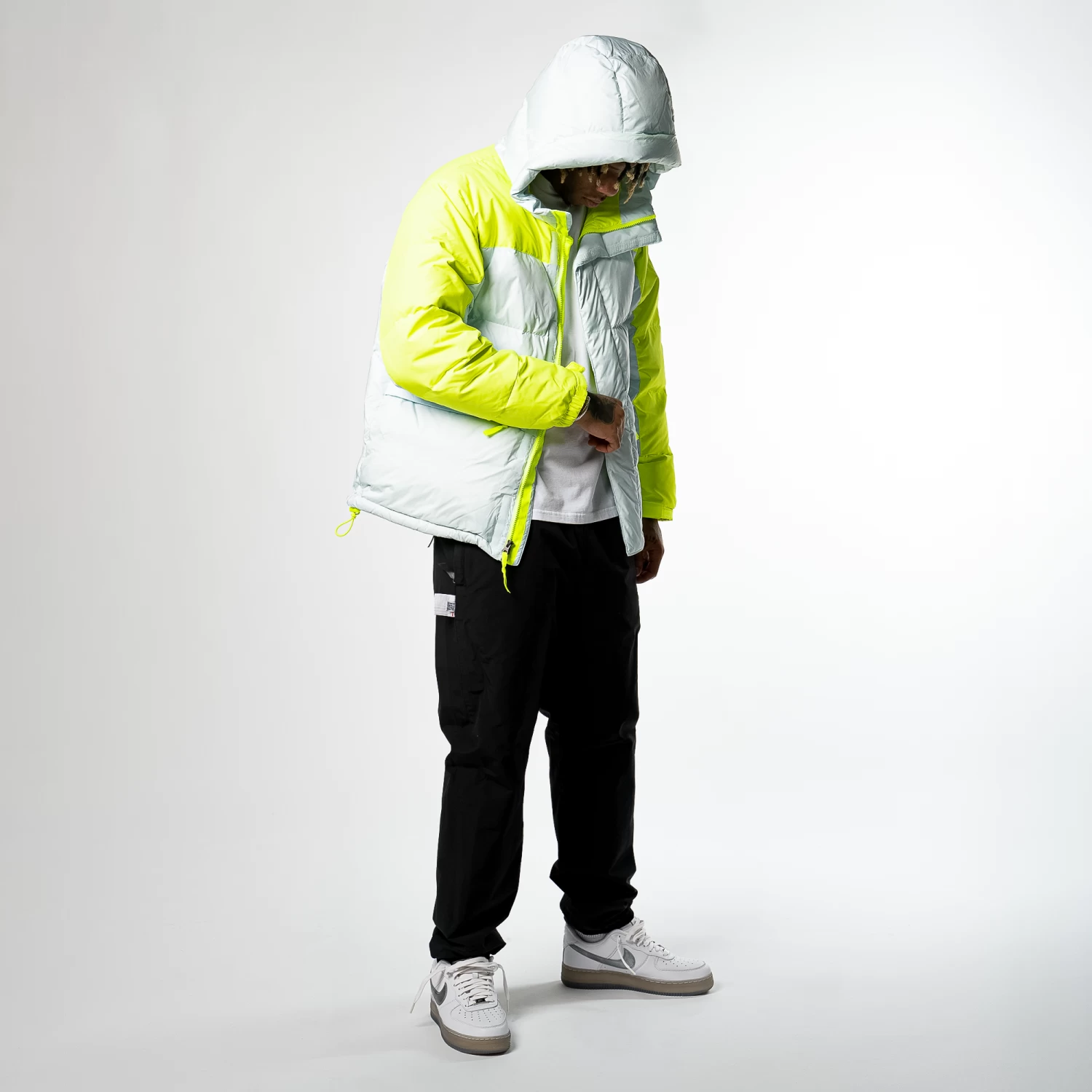The North Face HMLYN Down Parka – White/Neon Green